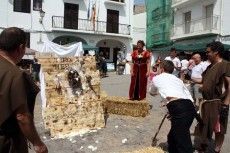 Los niños de Albocàsser disfrutaron del toro embolado infantil. Tras el Ball Pla, en la plaza de la Iglesia, los niños aprendieron cómo se debe embolar a un toro. Los encargados de portar el carro embolado acabaron exhaustos.