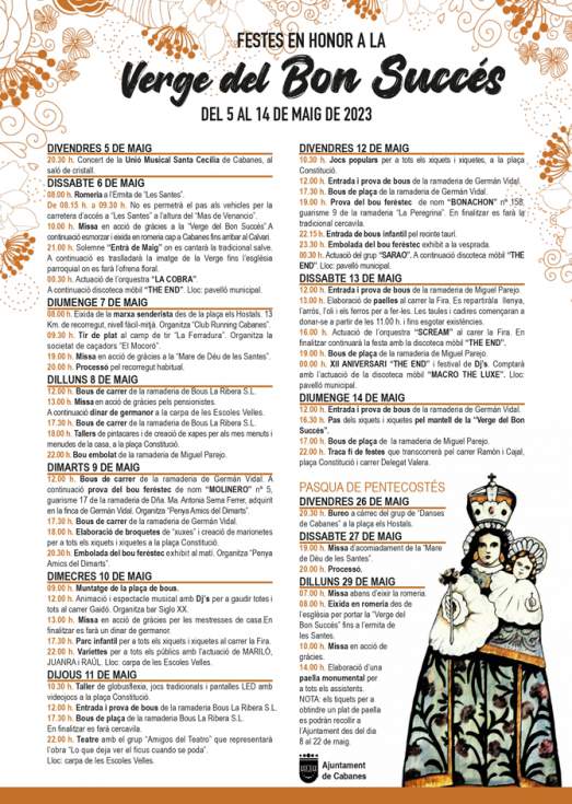 Del 28 de junio al 9 de julio, La Ribera de Cabanes se vestirá de gala para celebrar las Fiestas de Sant Pere de La Ribera, en honor al santo patrono. Con una variedad de eventos como entrada de toros, conciertos en vivo, cenas de hermandad, concursos, actividades infantiles y mucho más.